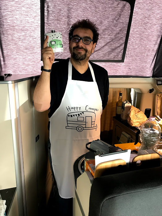 Tornati sul camper, pranzo principesco (eravamo stravolti: secondo il telefono di Anna, che ha la funzione che conta i piani di scale saliti e discesi, abbiamo fatto l'equivalente di 80 piani!) con piadina e burratina comprate da eataly, ci viziamo anche in mobilità!, e partenza per tornare a casa.